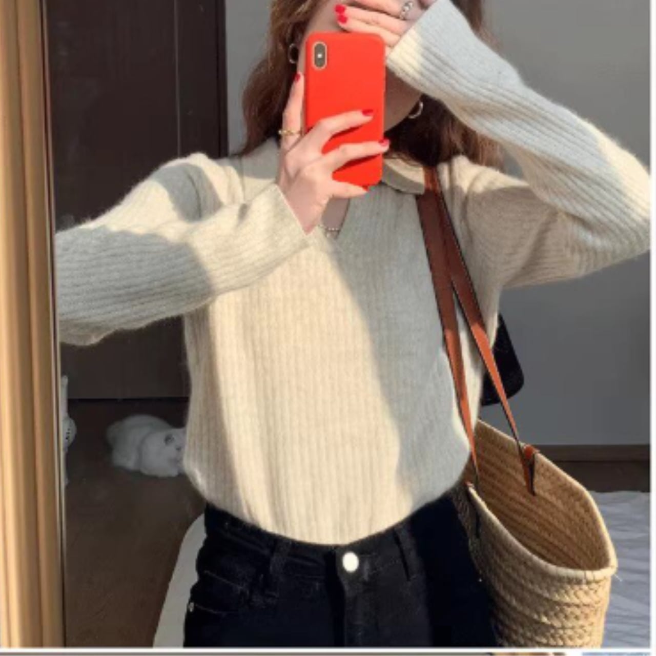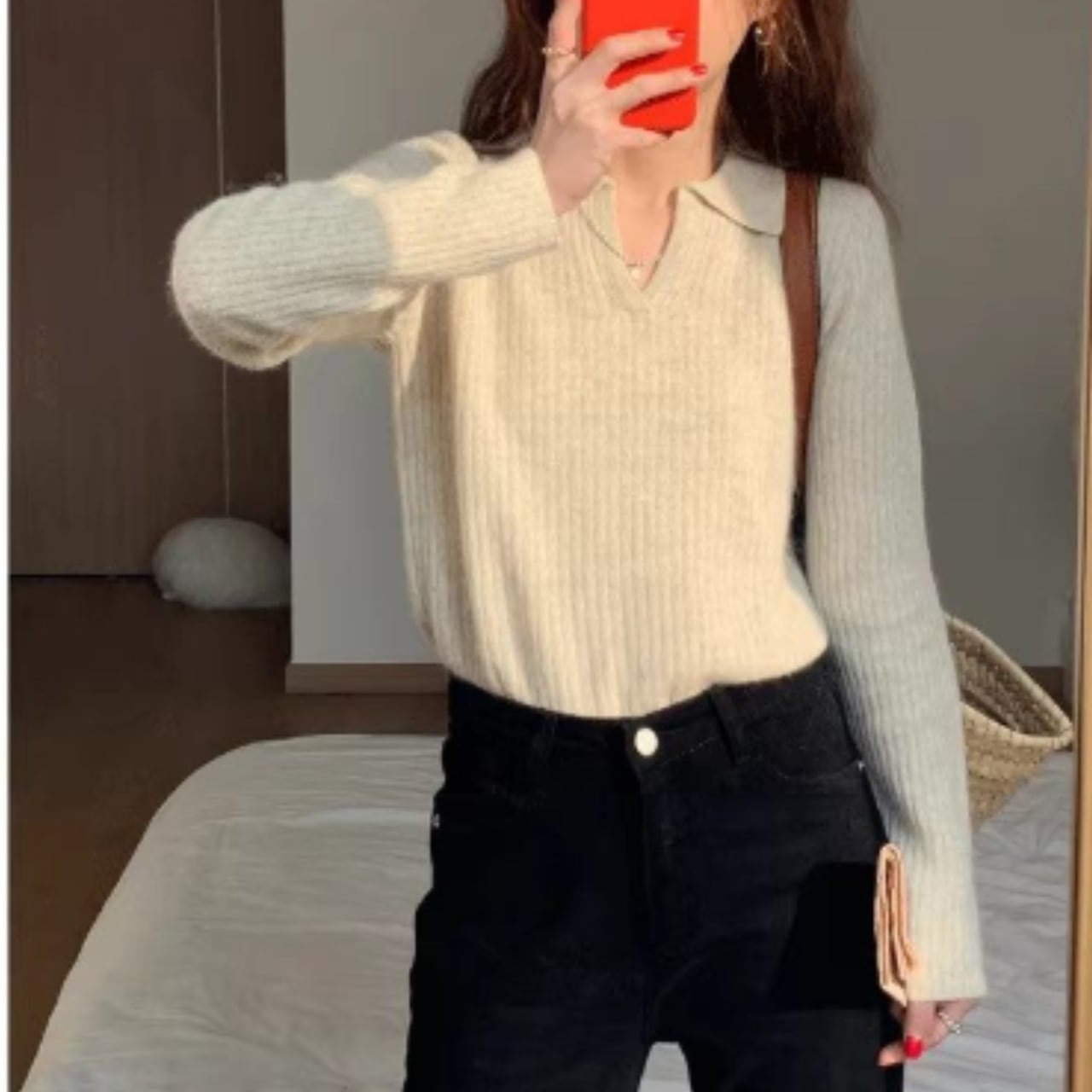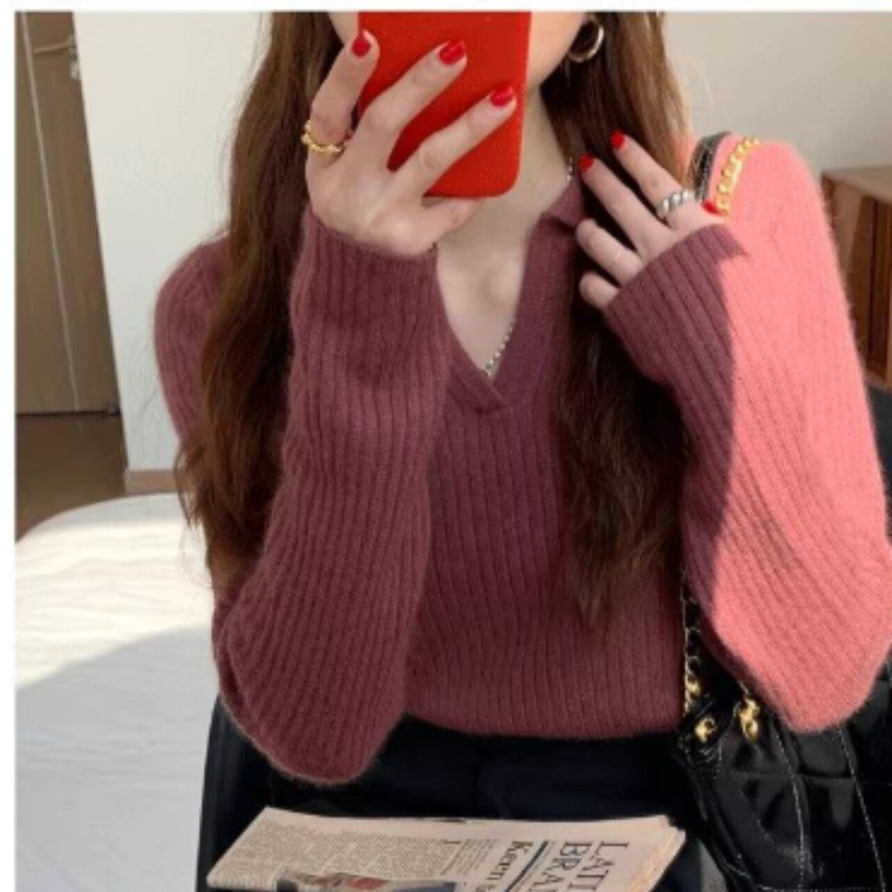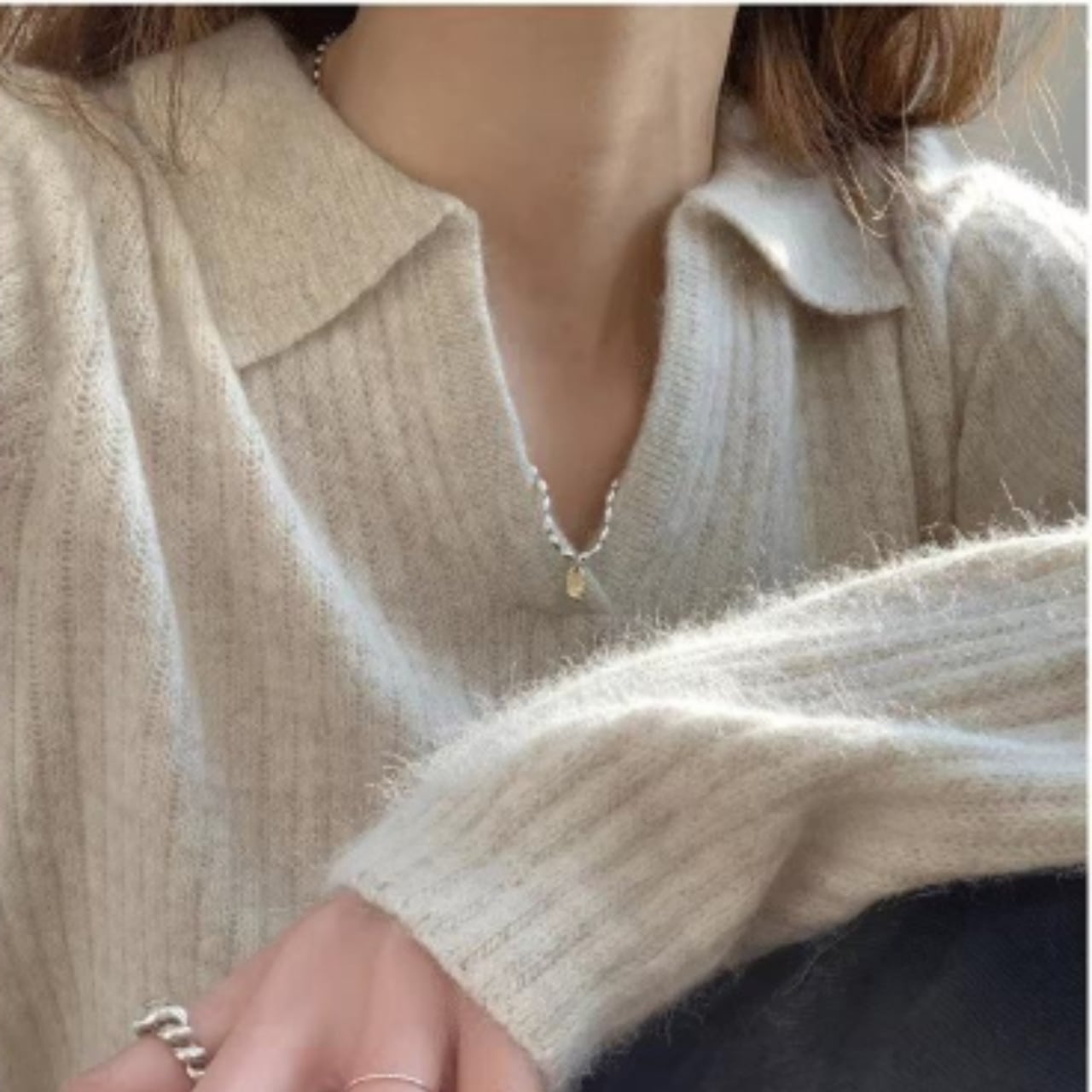 オープンカラーがデコルテを美しく見せ、女性らしさを演出します。