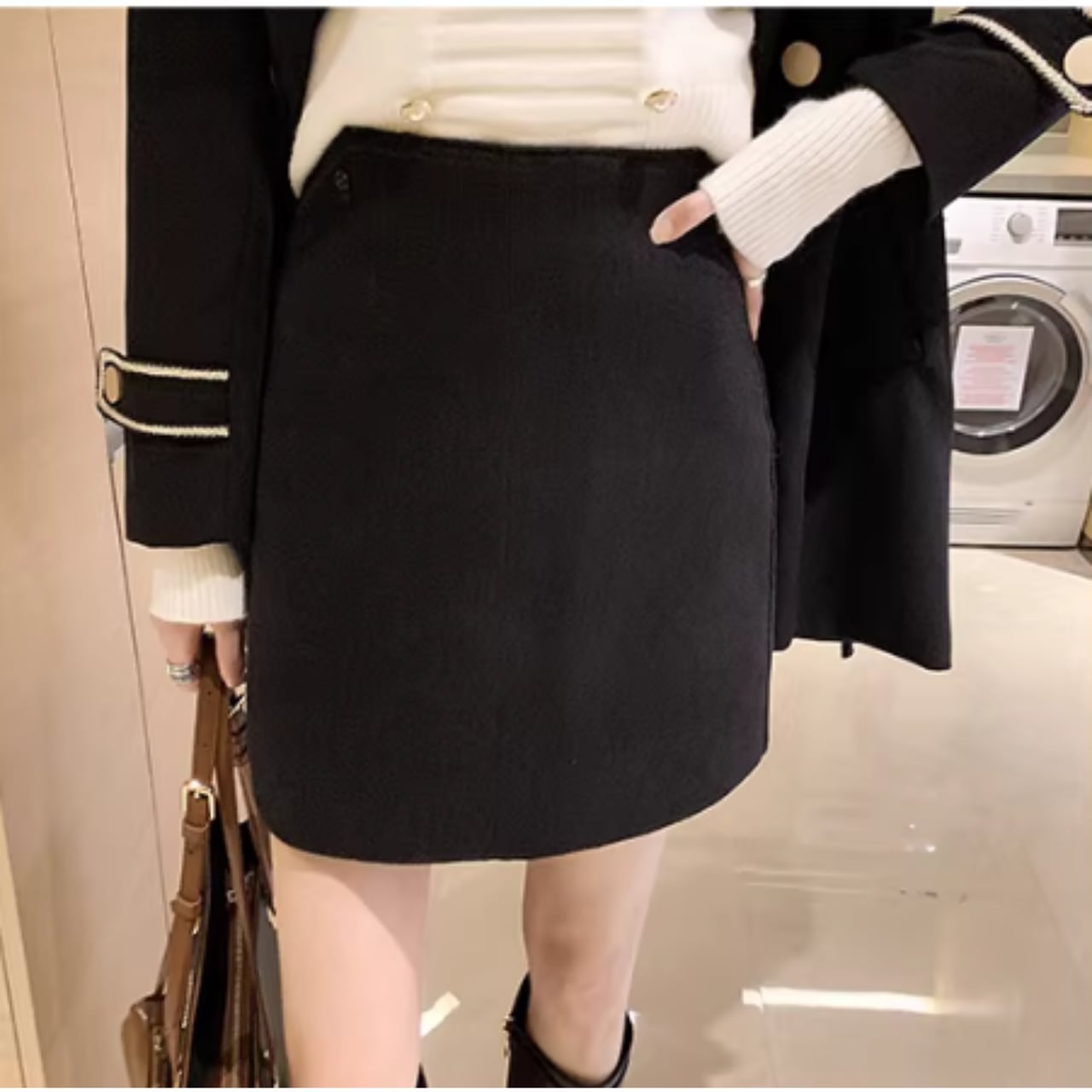 トレンド感あふれるミニ丈スカート。