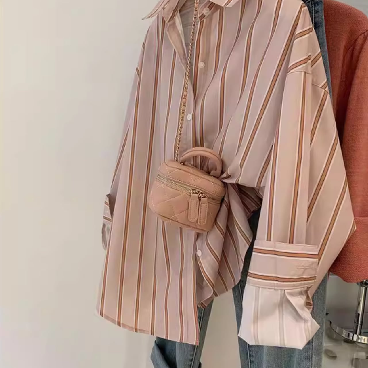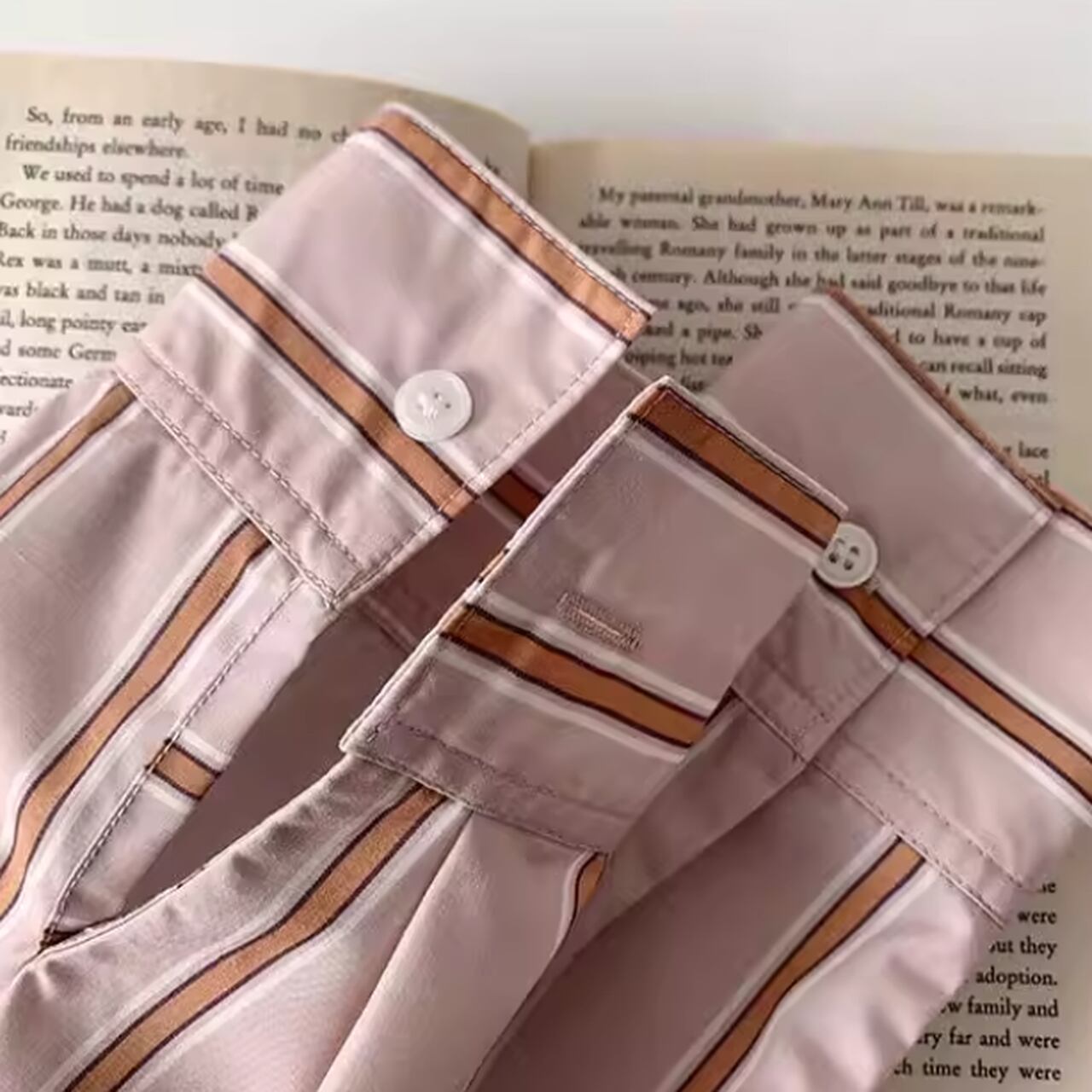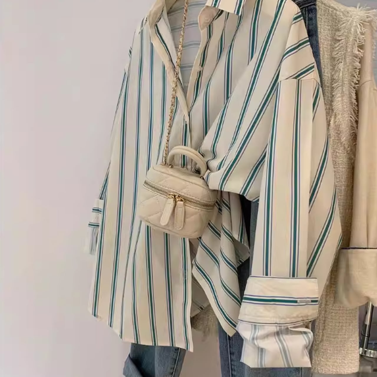 縦のラインを強調するストライプ柄で、すっきりとした印象に。
