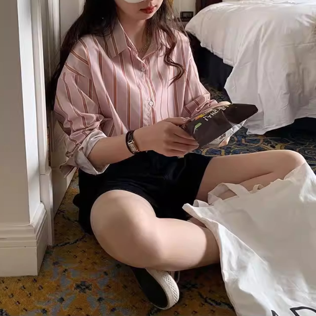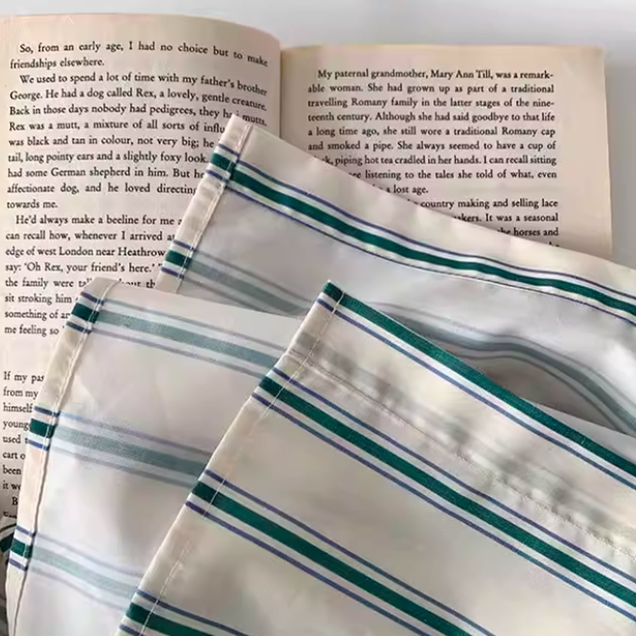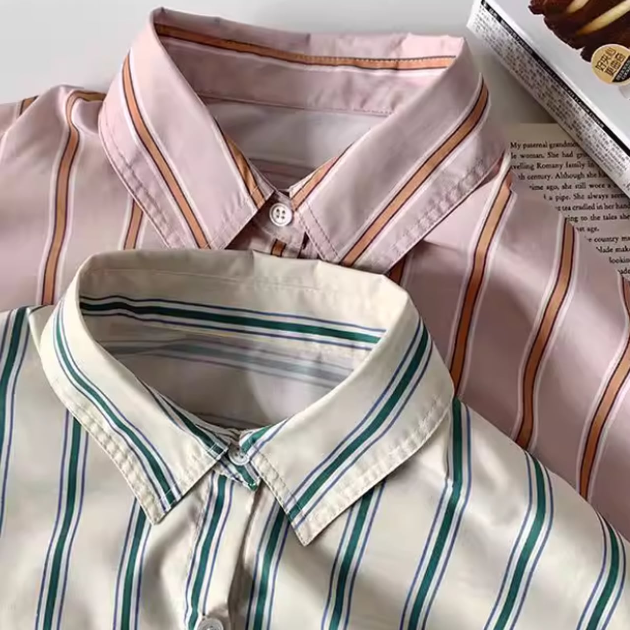 縦のラインを強調するストライプ柄で、すっきりとした印象に。