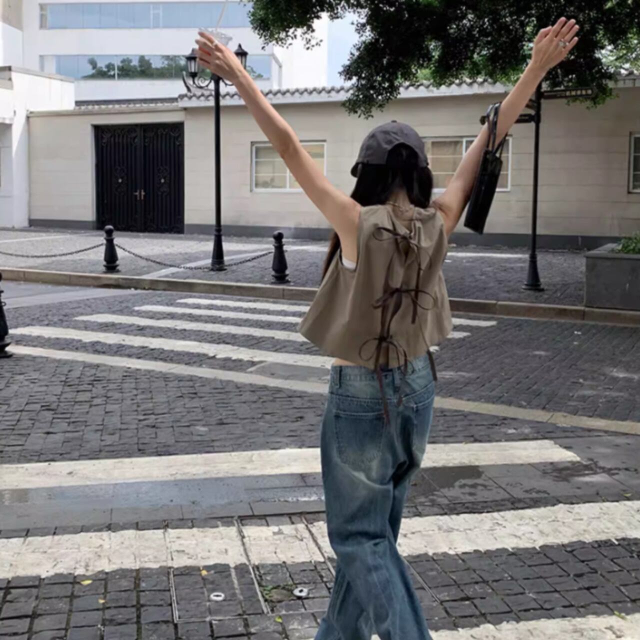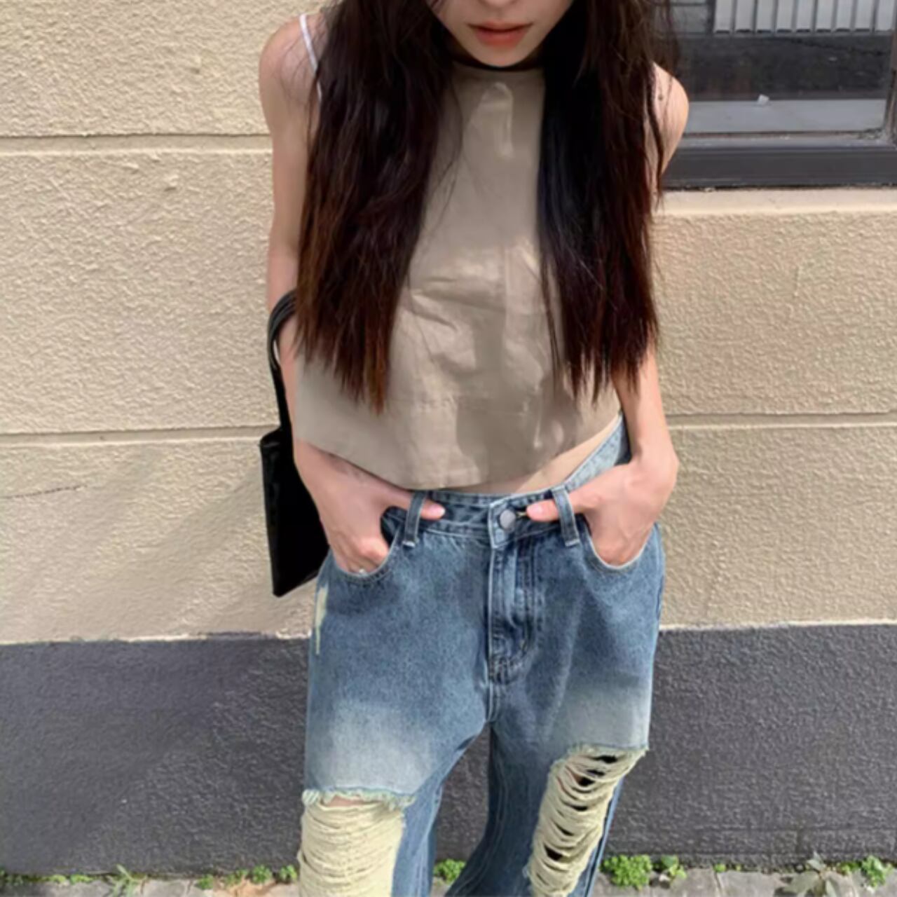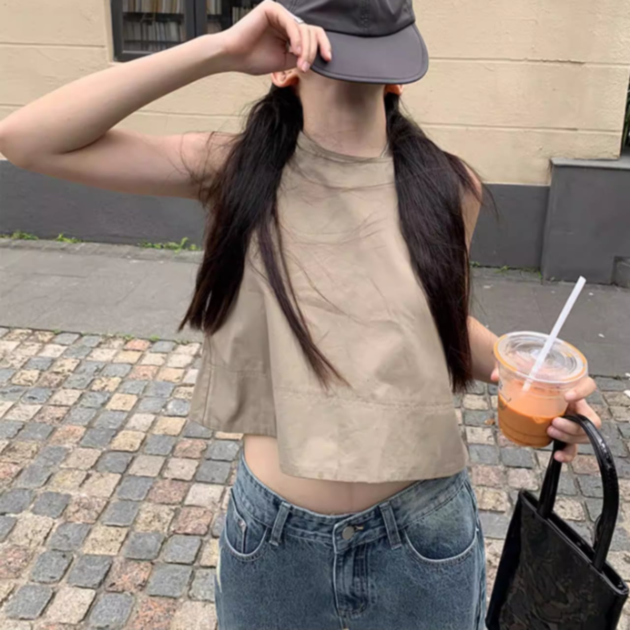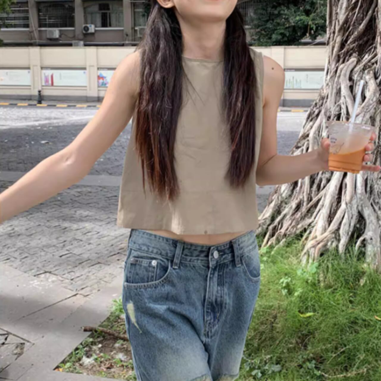 トレンドのスタイリングが手軽に完成する、ノースリーブクロップド丈タンクトップ。