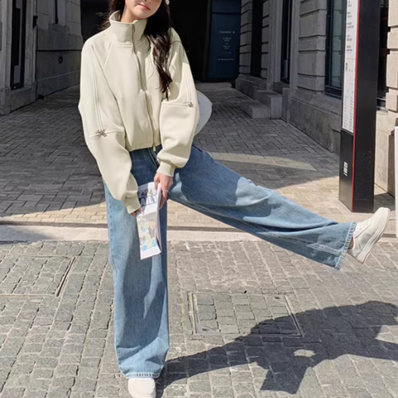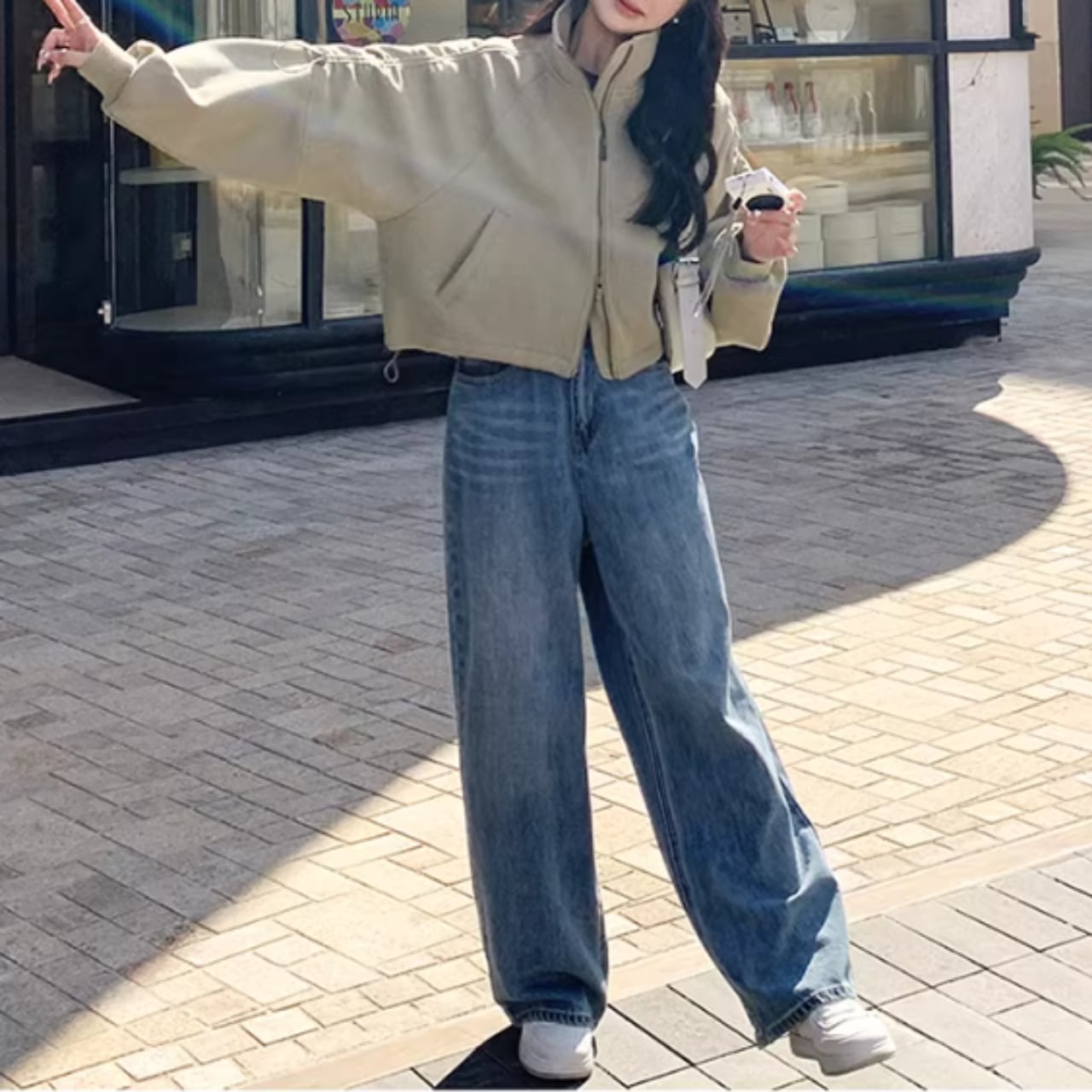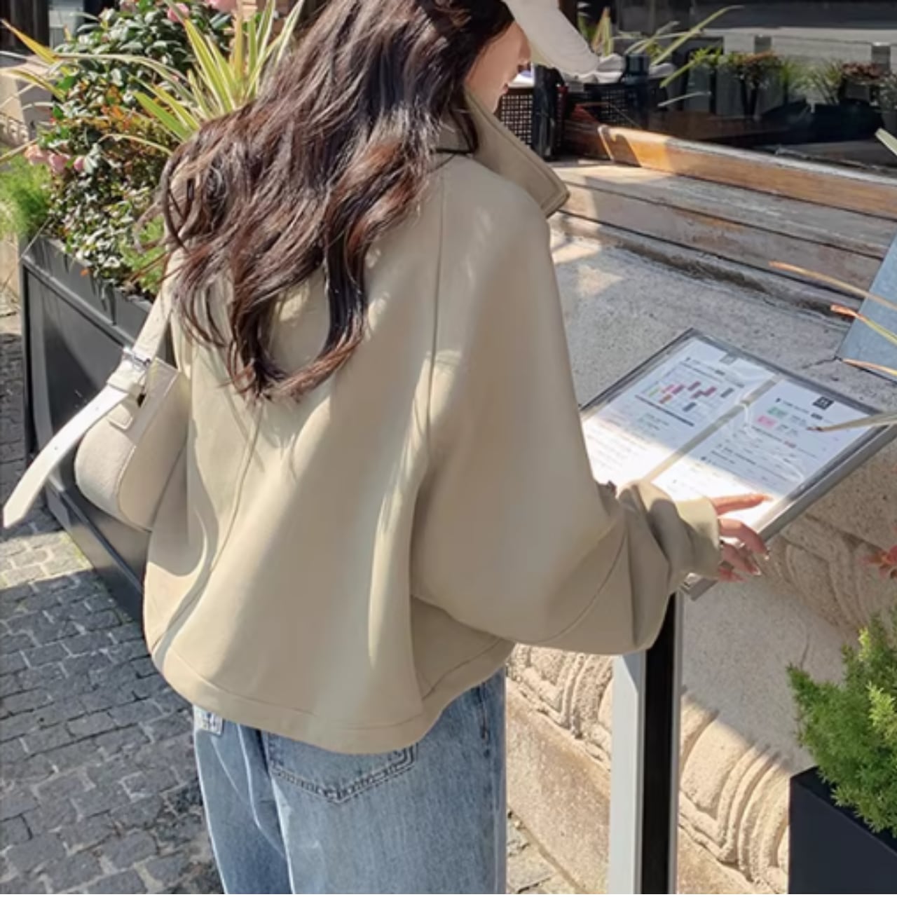 ヒップ丈の短め丈でスタイルアップ効果。