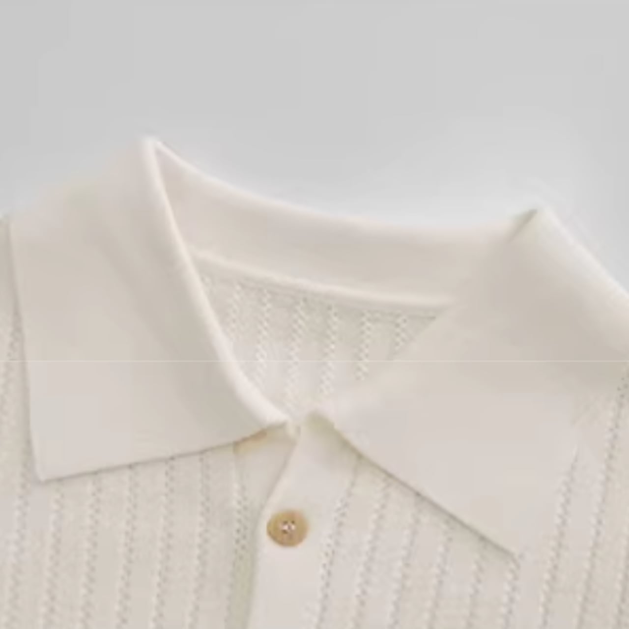 リブ編みで上品な印象のニットポロシャツ。