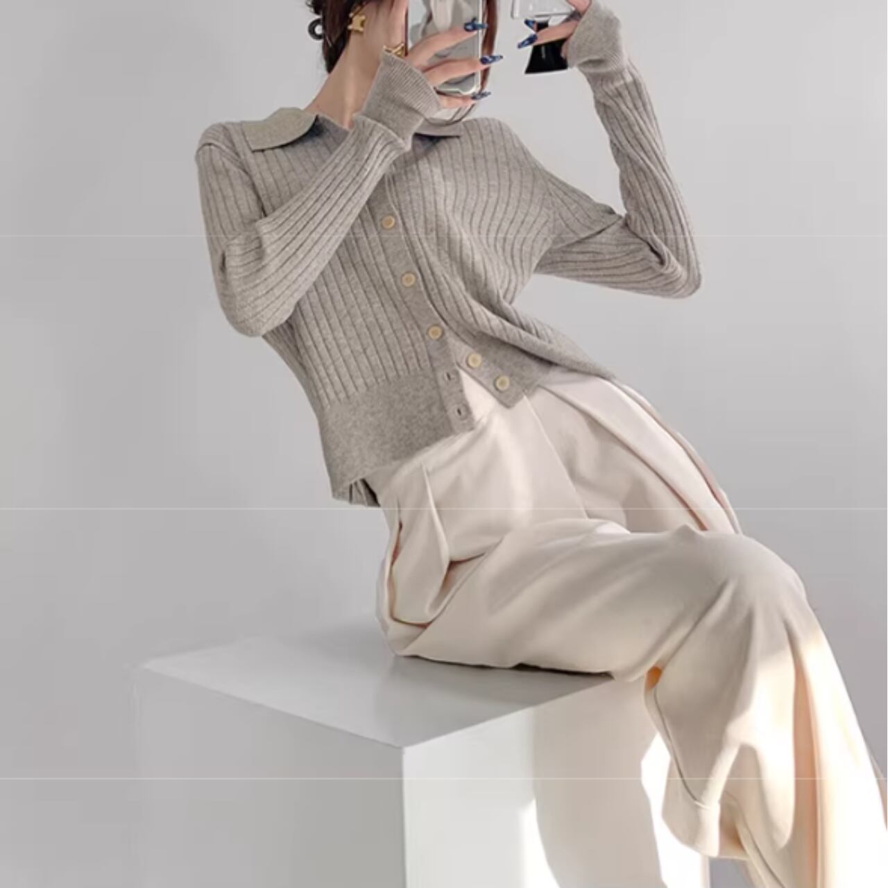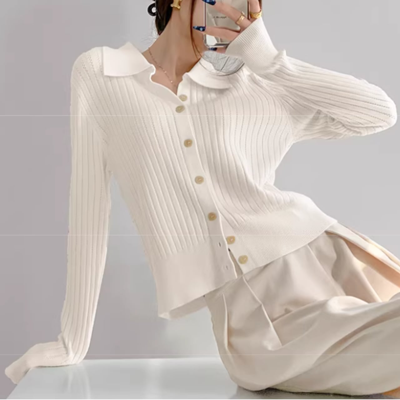 ボタンを開けてカーディガンとして、閉じてプルオーバーとして、様々な着こなしが可能です。