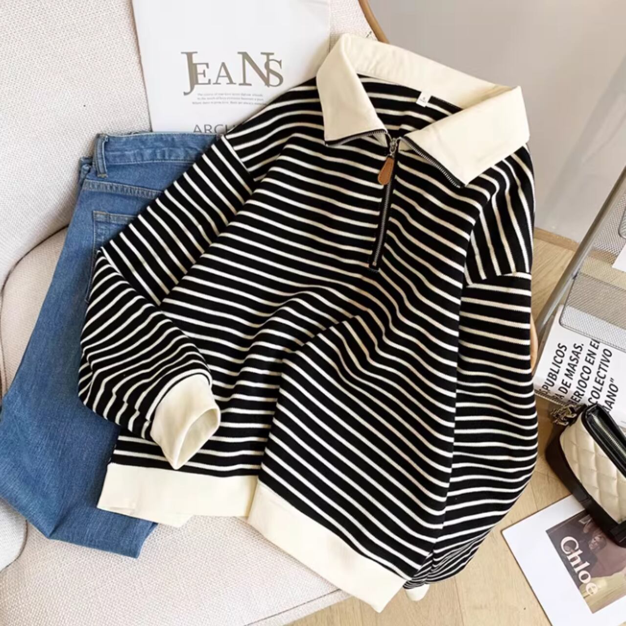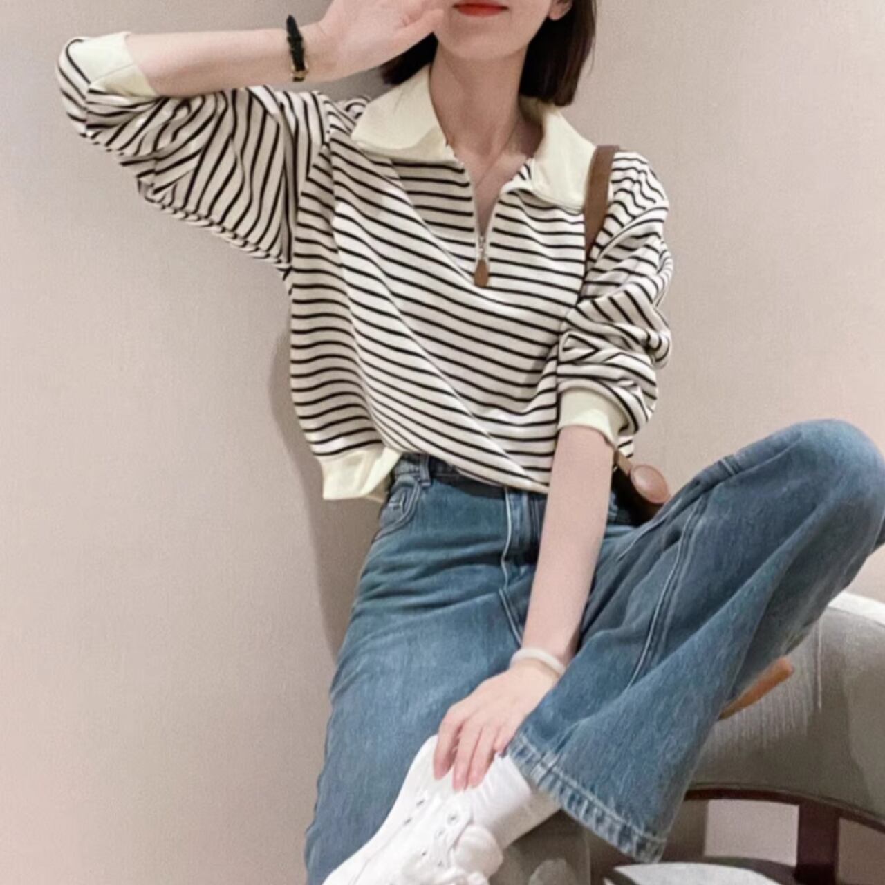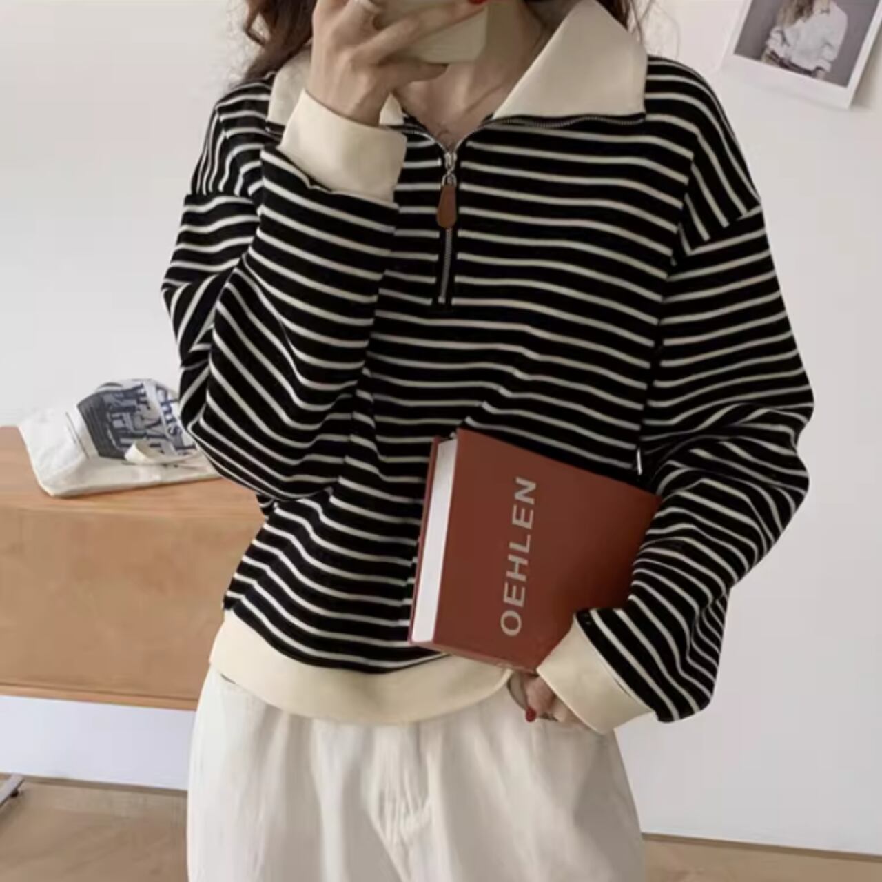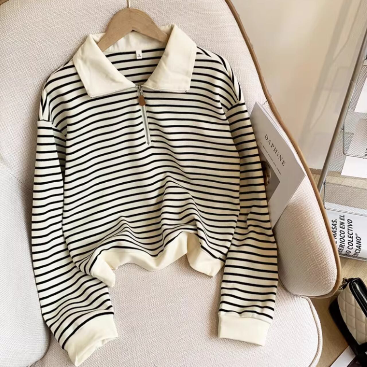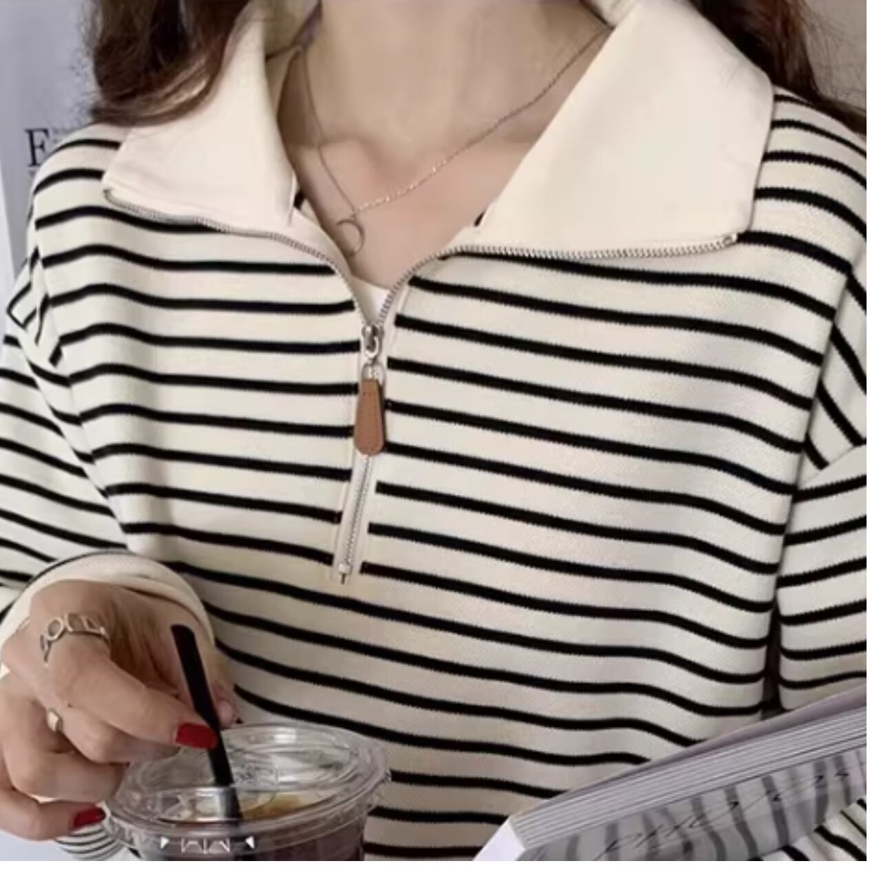 ハーフジップデザインで、トレンド感のあるスタイリングが楽しめます。