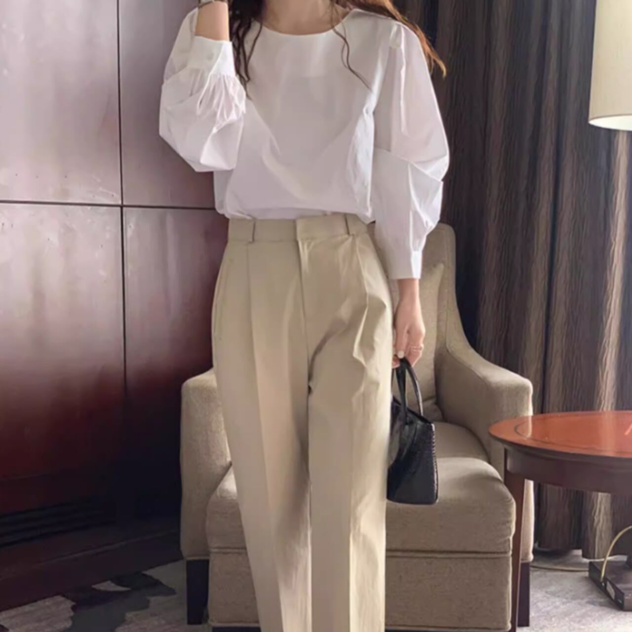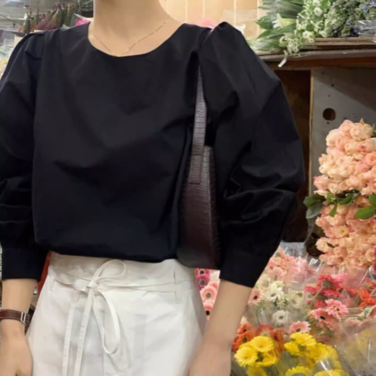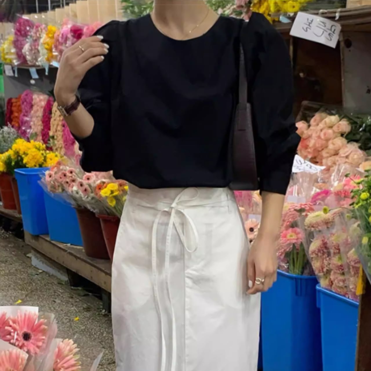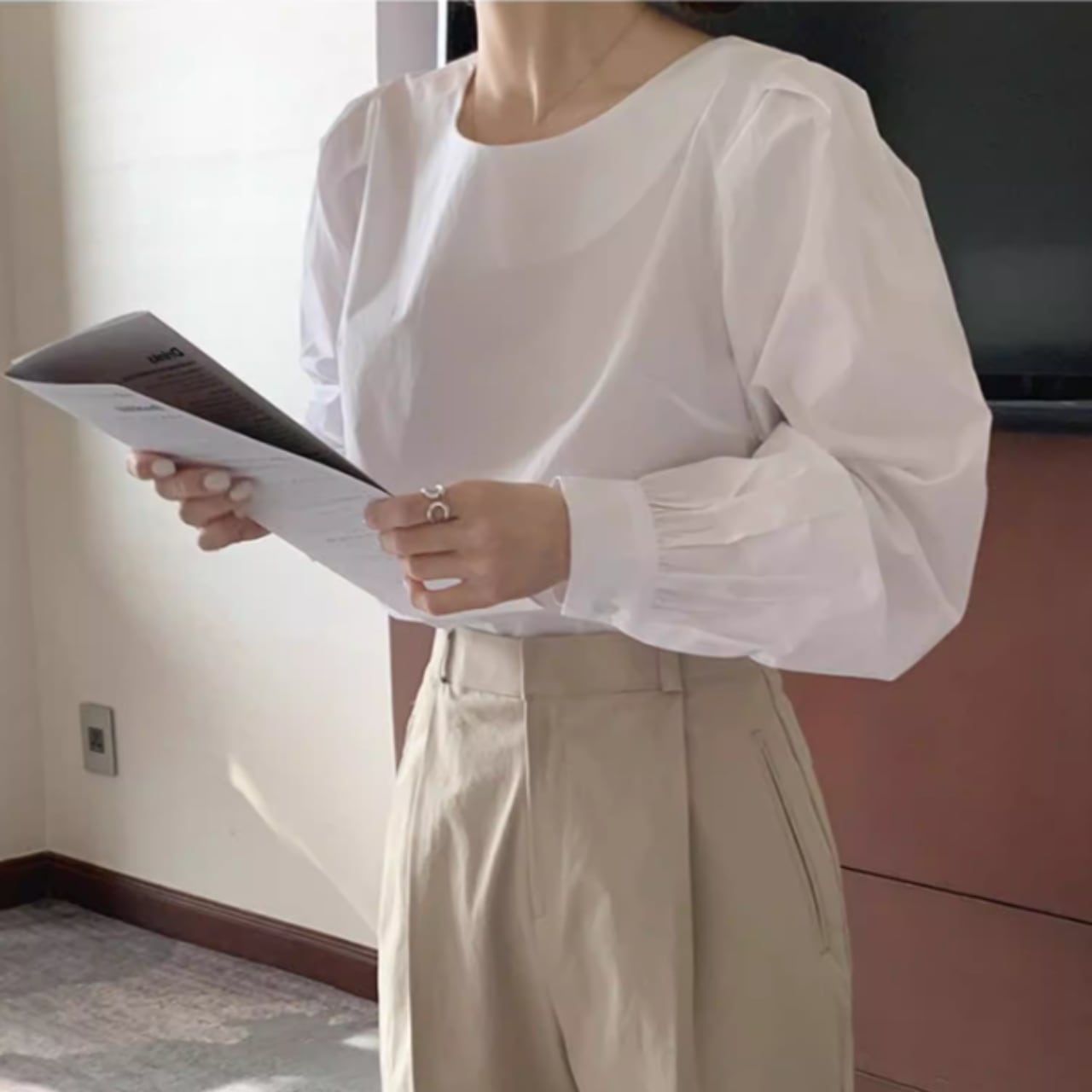 後ろ姿まで抜かりなく、女性らしさを演出するブラウス。