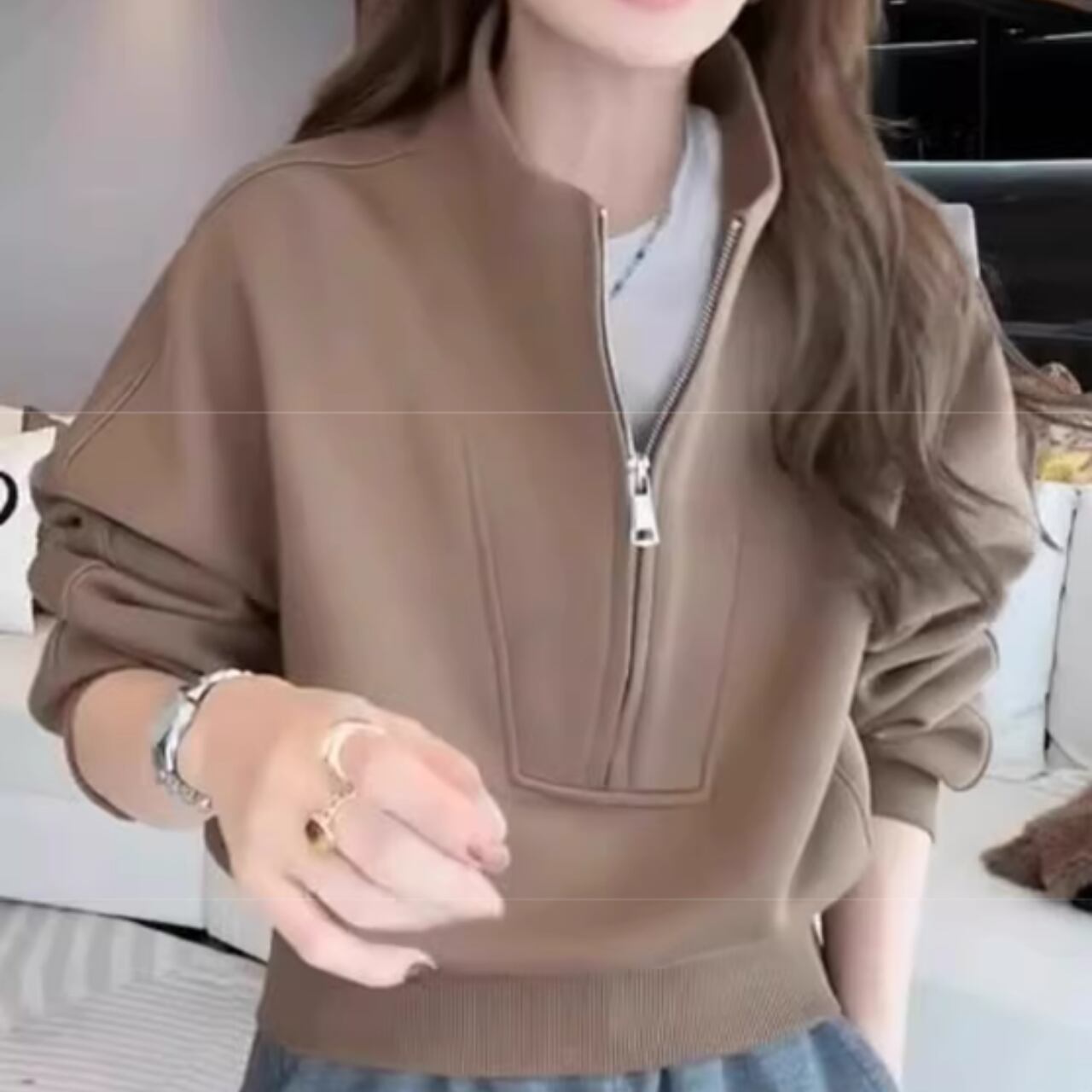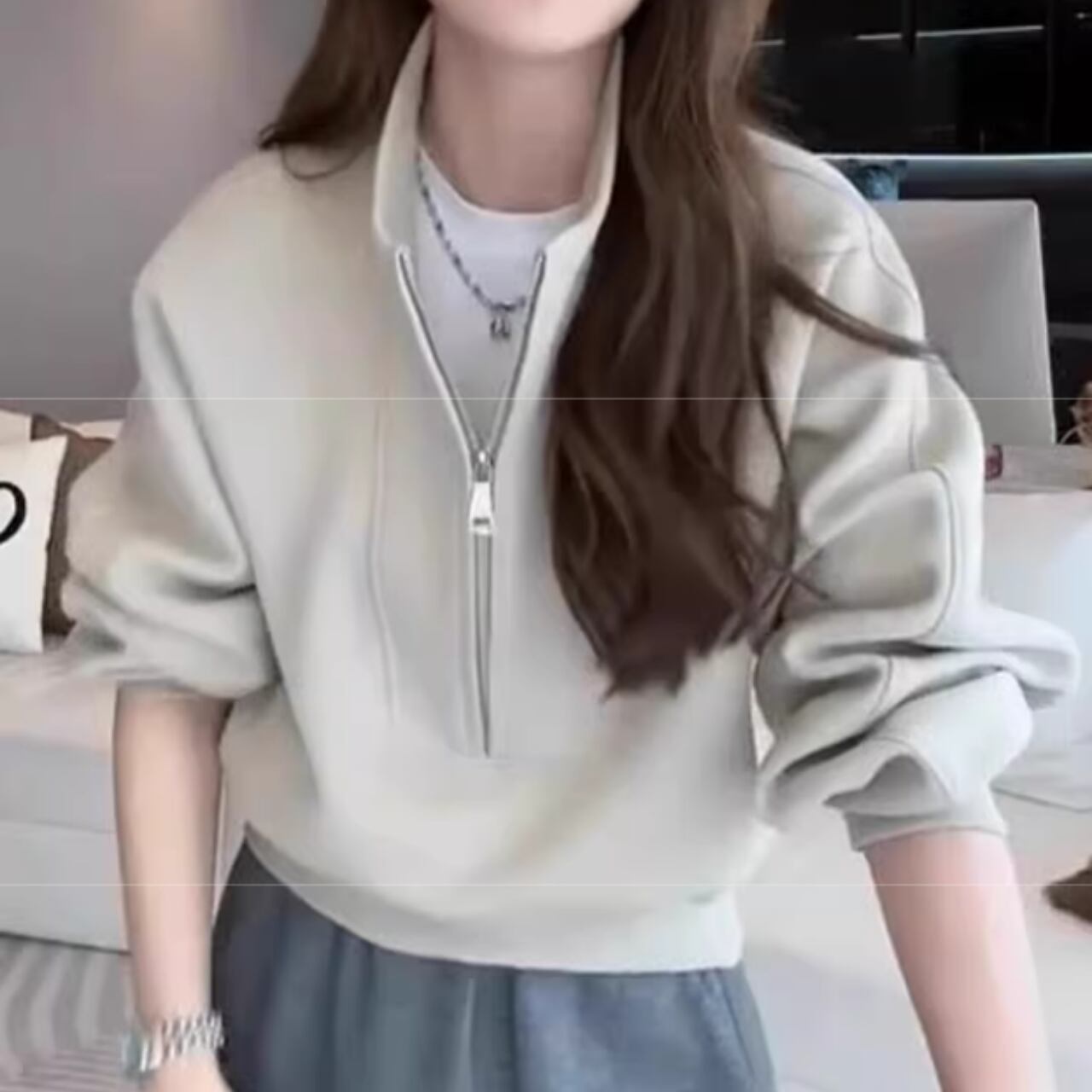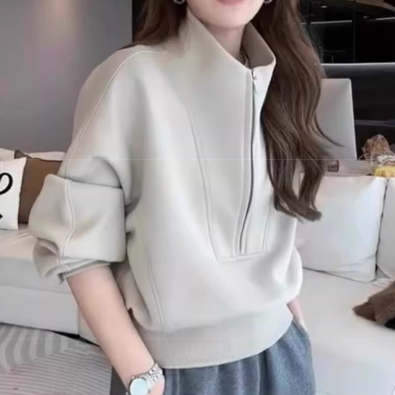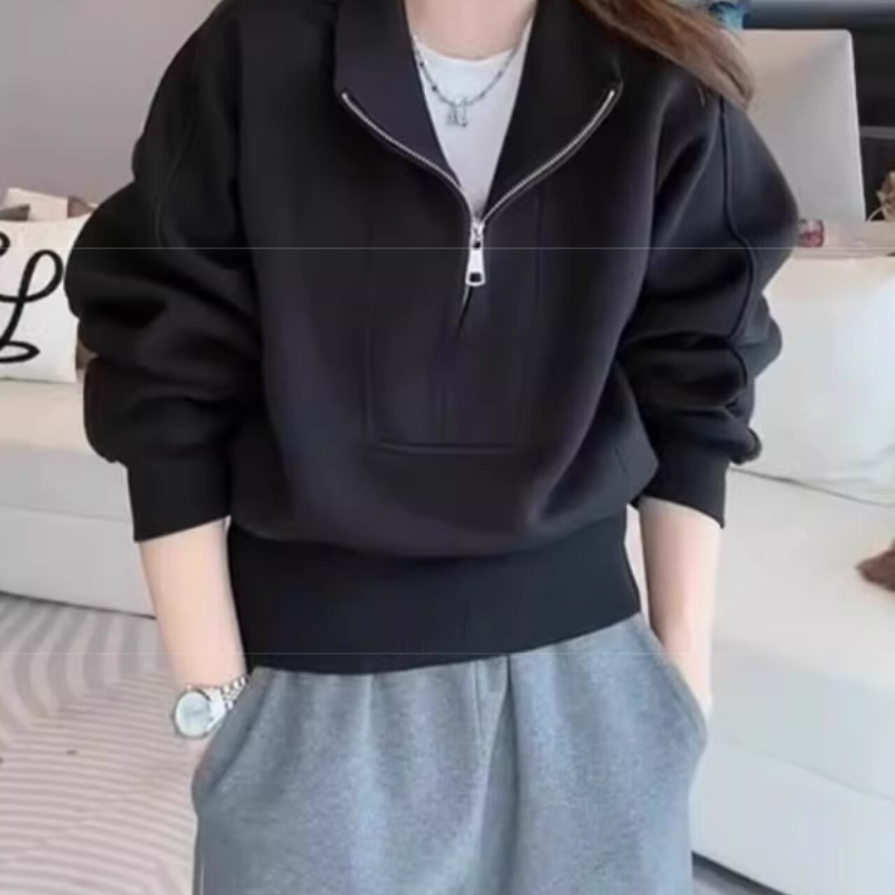 ハーフジップ クロップド丈 スウェット 0035