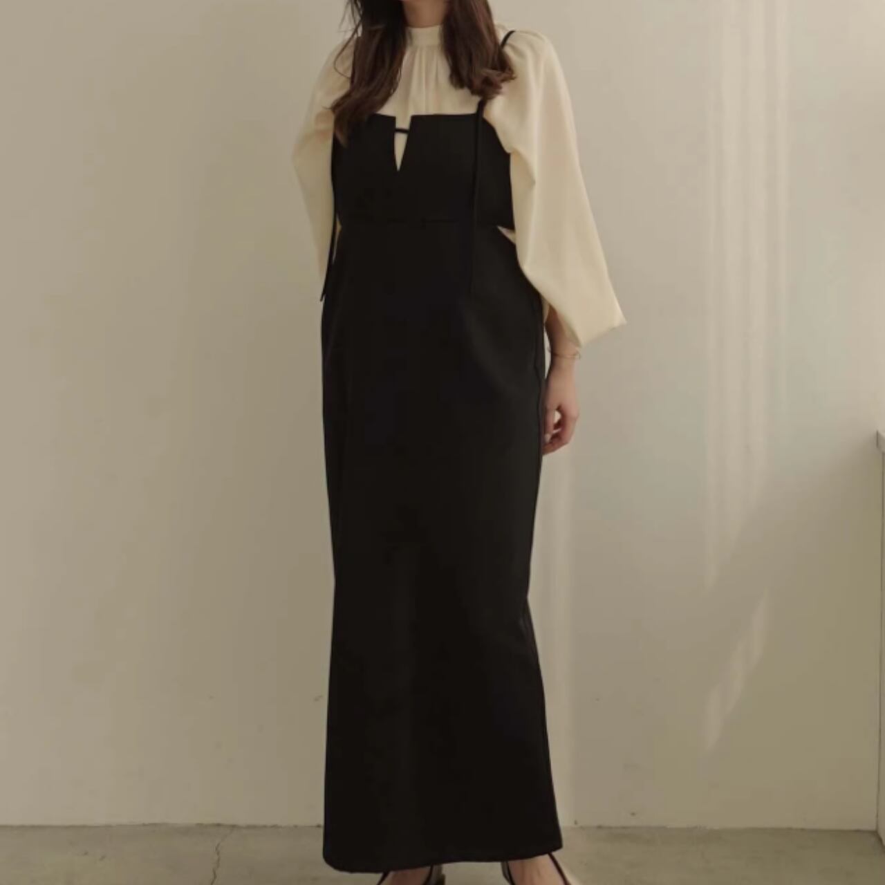 ストラップ付き マキシ丈 キャミソールワンピース 0039