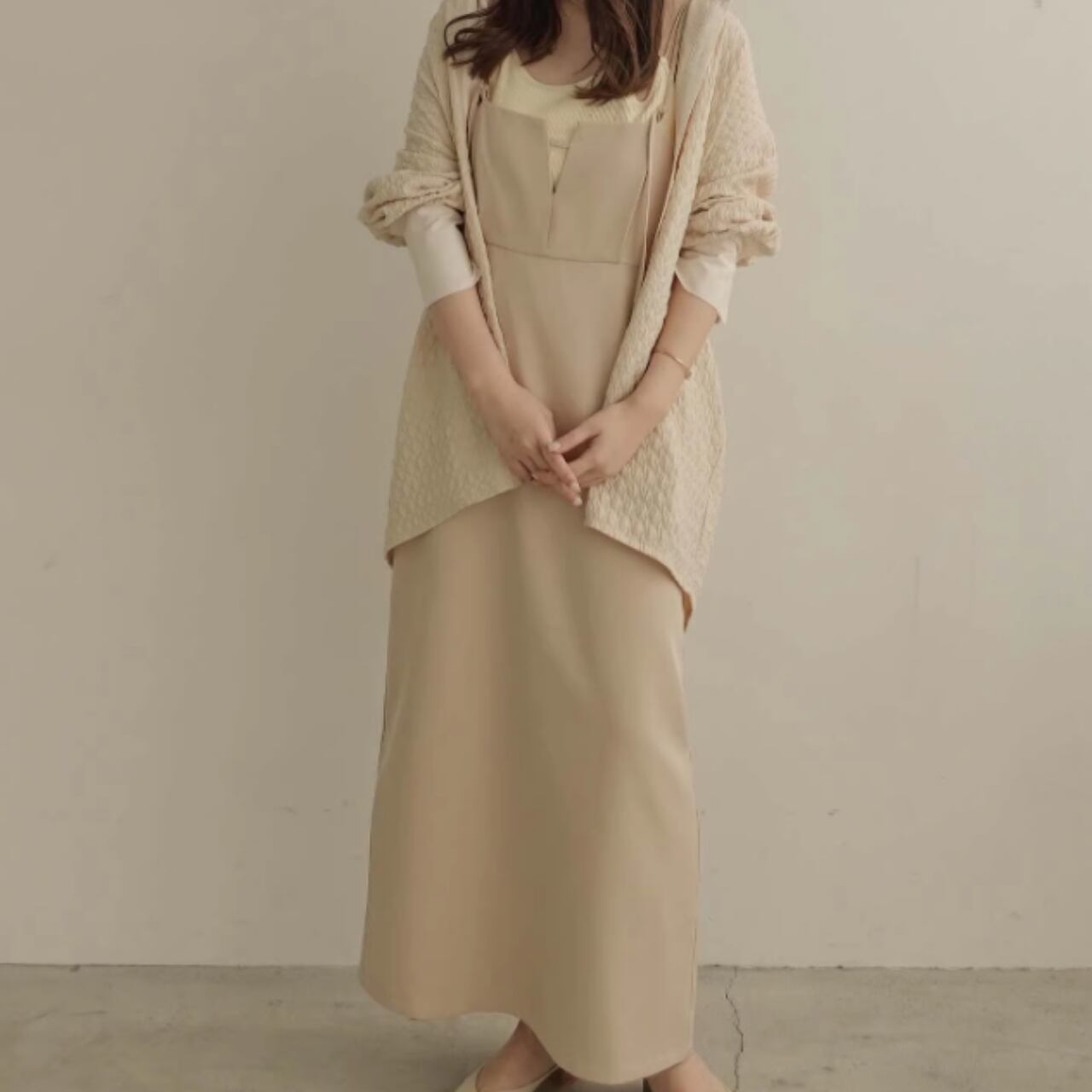 レイヤードスタイルが楽しめるキャミソールワンピース。