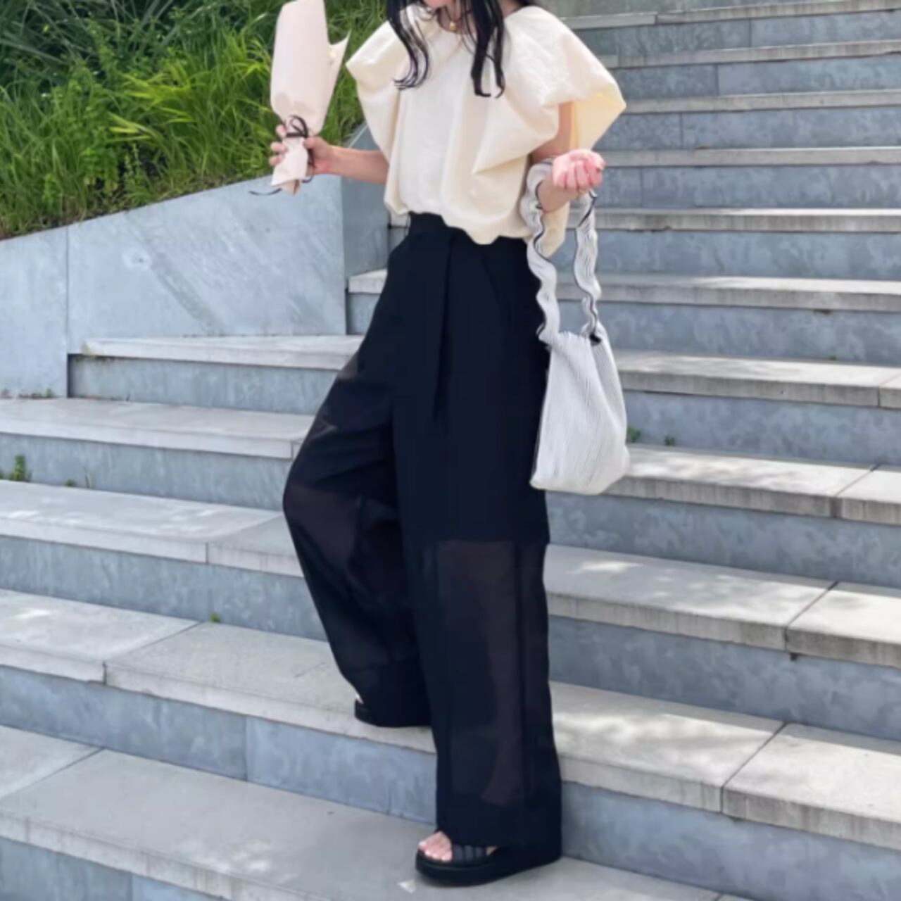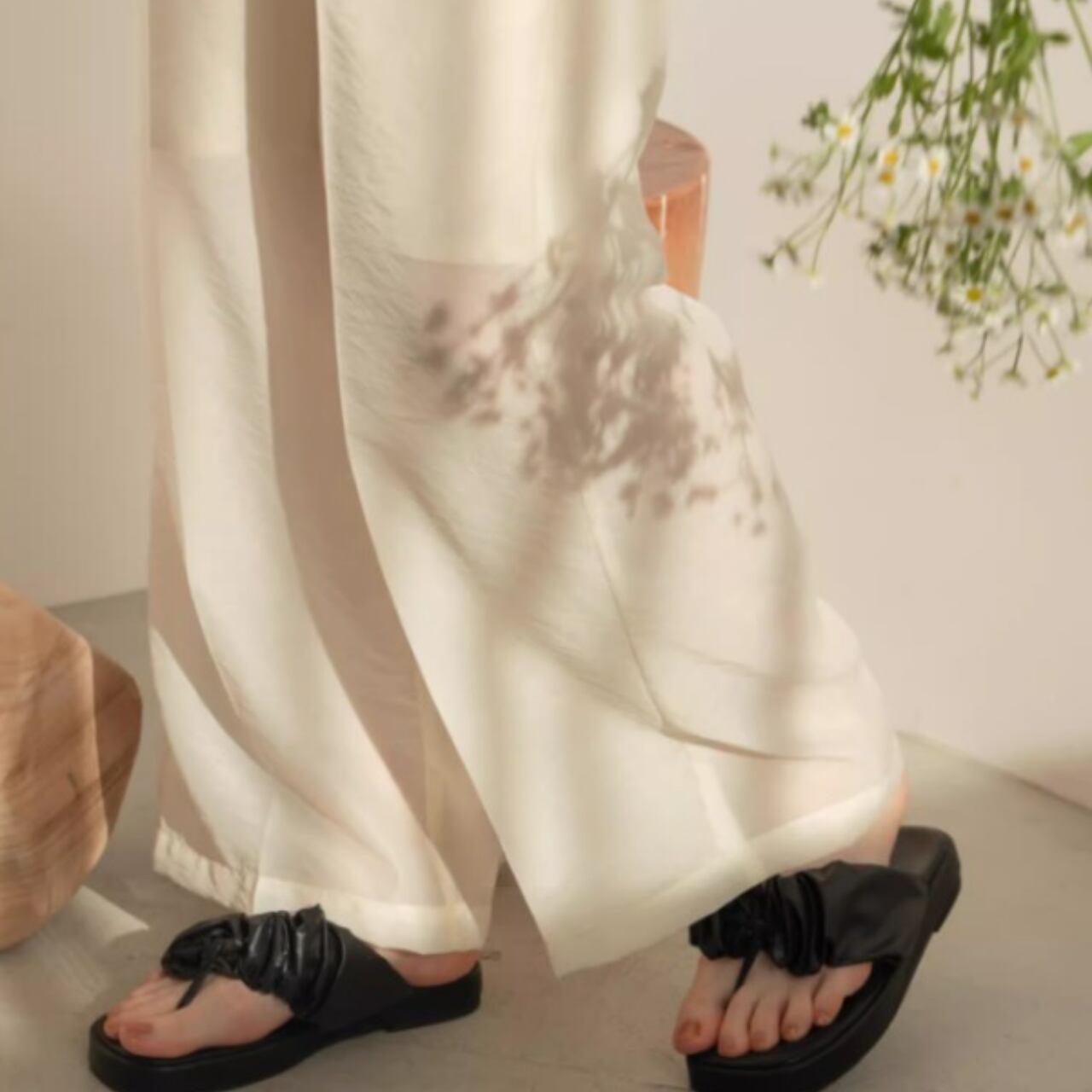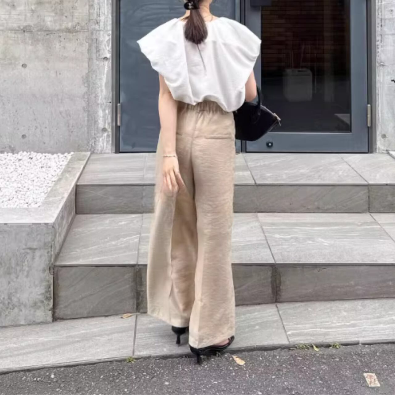 リラックス感と上品さを兼ね備えた、大人のためのワイドパンツ。
