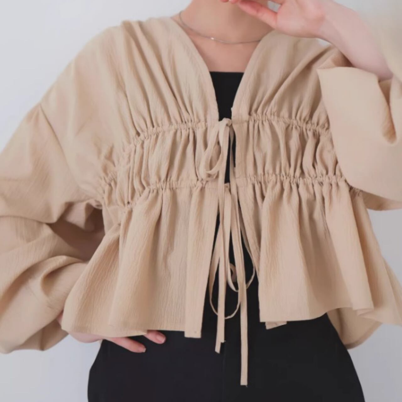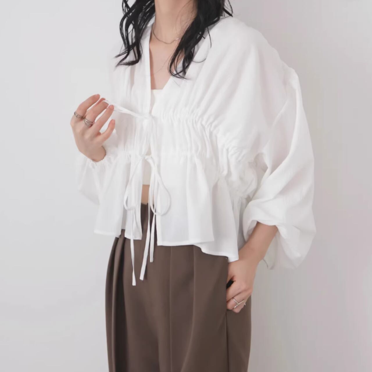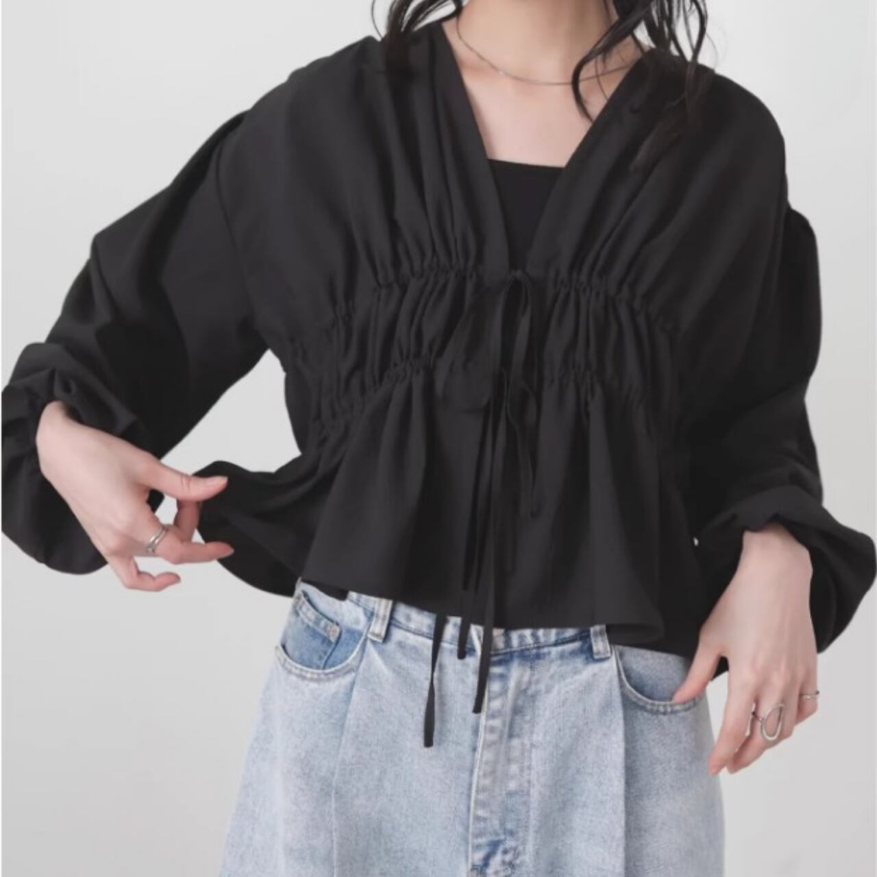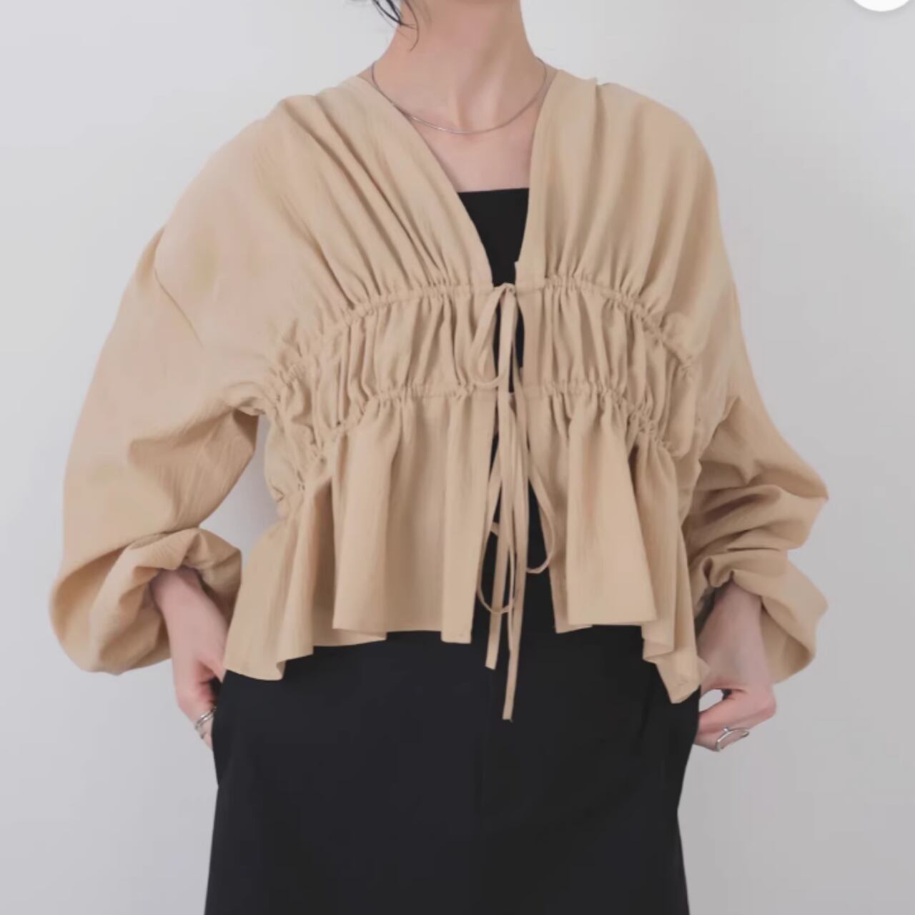 ドローストリング クロップド丈 ブラウス 0043