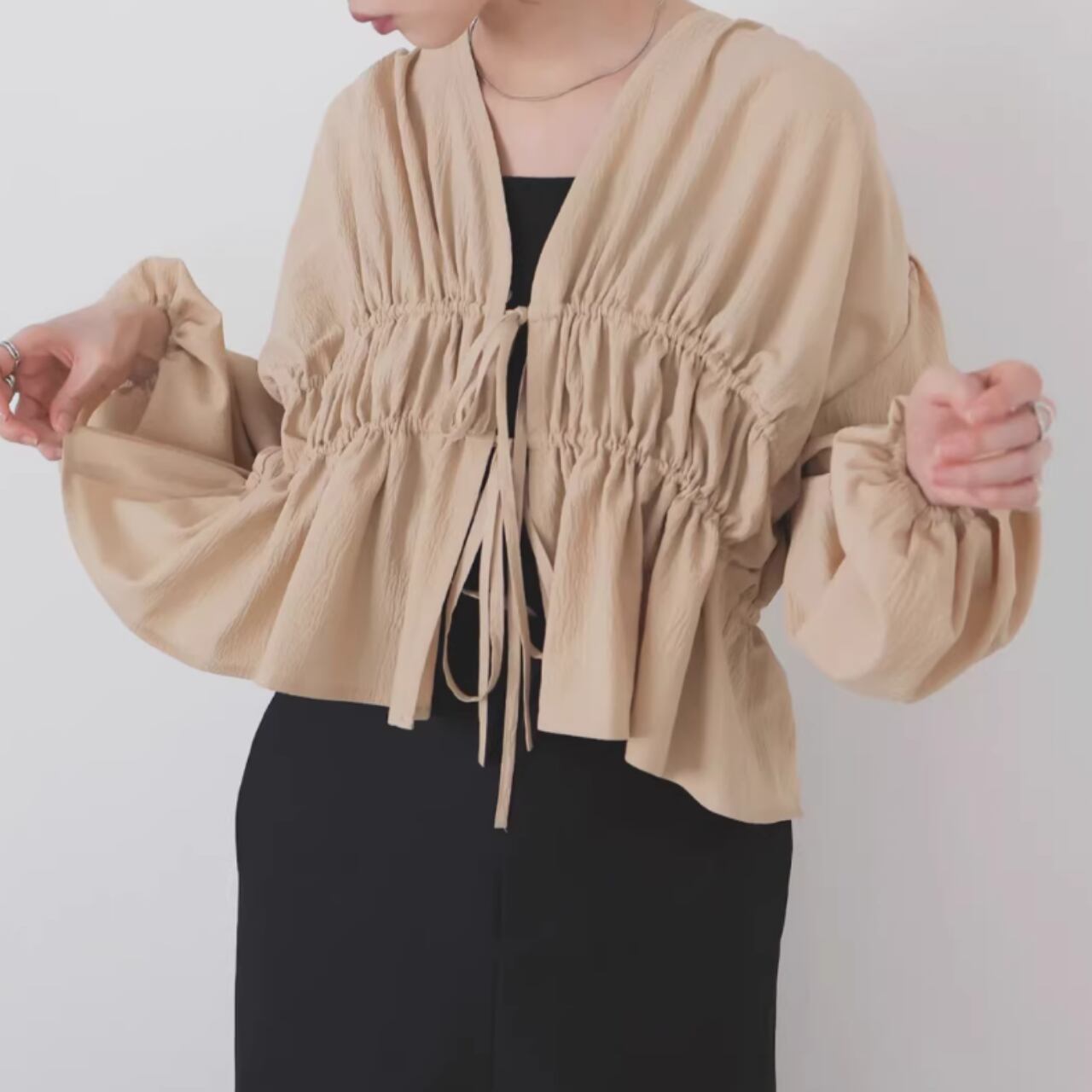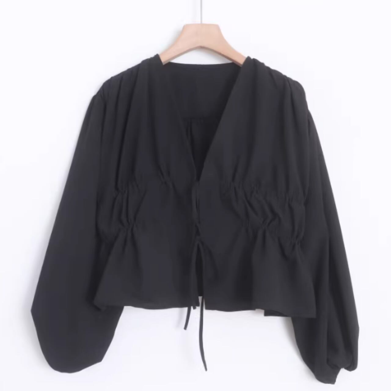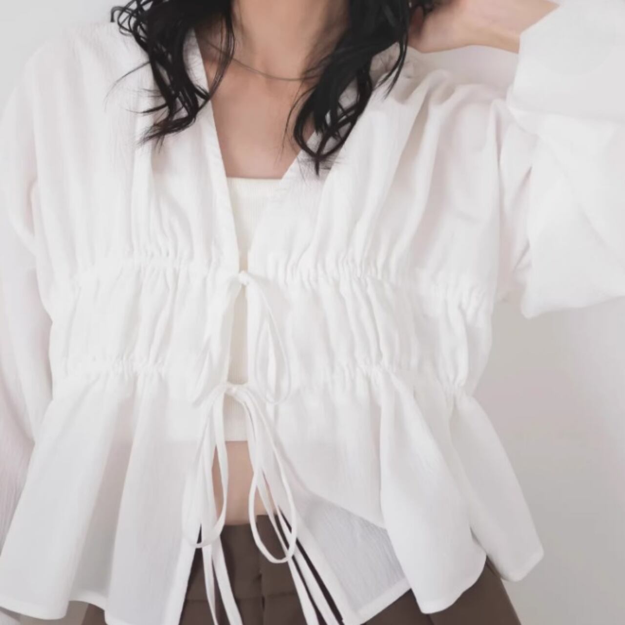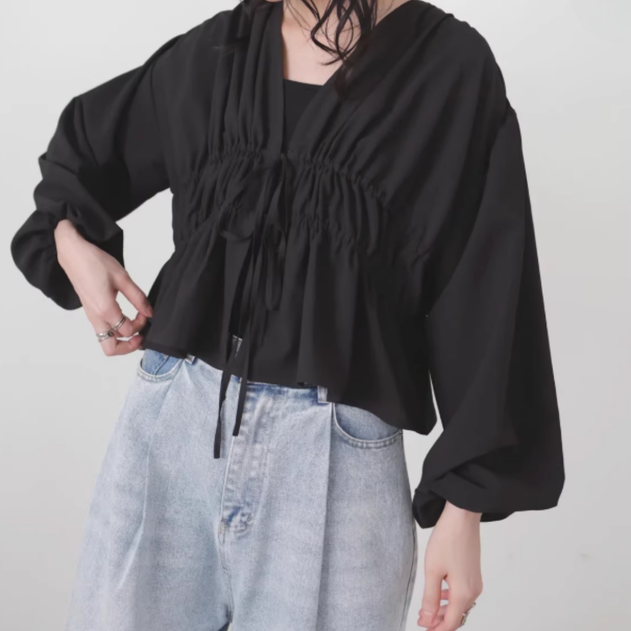 ドローストリング クロップド丈 ブラウス 0043