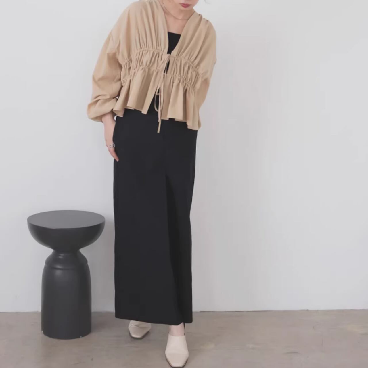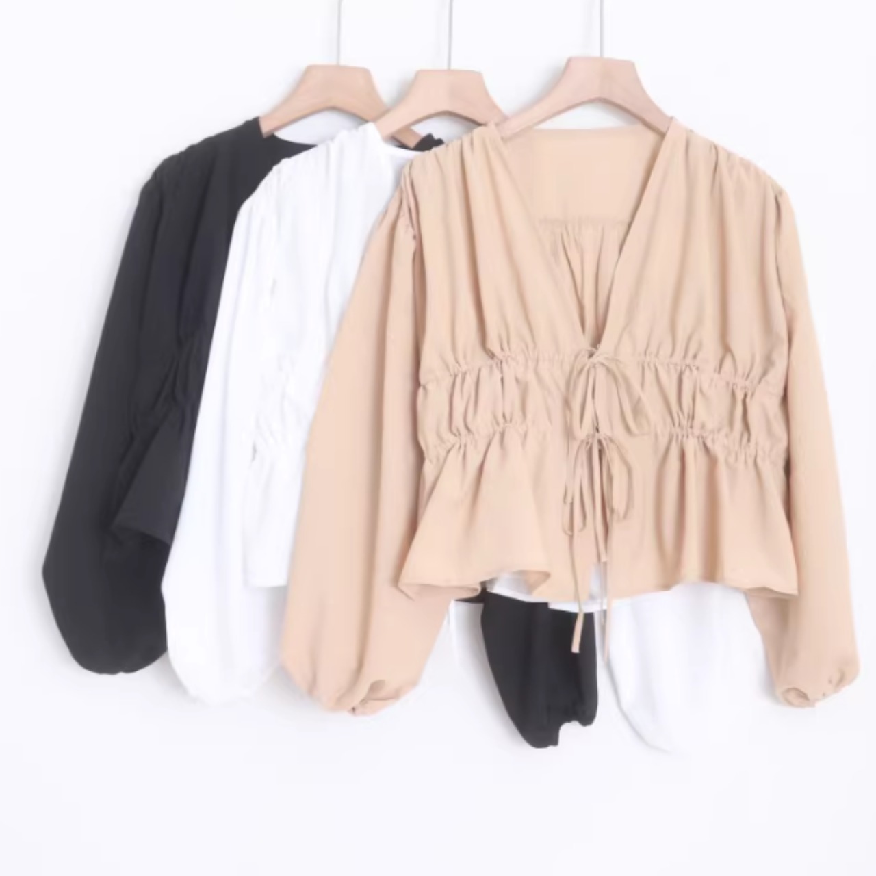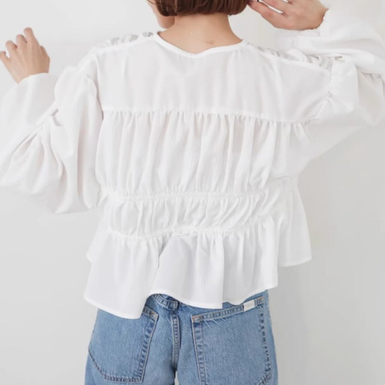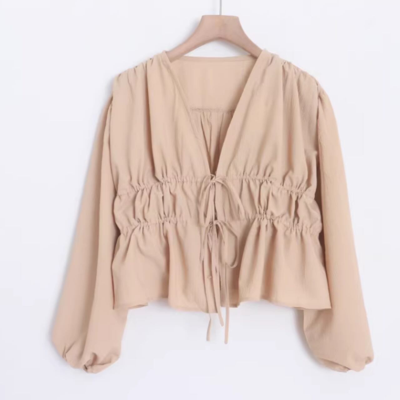 ドローストリング クロップド丈 ブラウス 0043